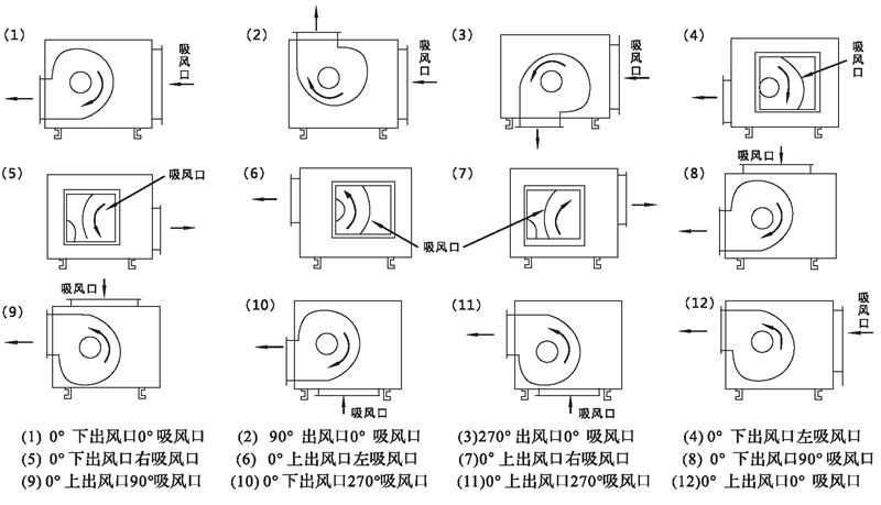 注:1. A型風機箱的電機機座號大于等于160,則電機放在風機側面或F面,機座號小于等于132,則電機放在風機上面(如外形尺寸圖);