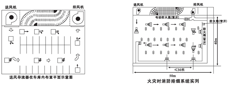 對地下停車場,可有效地排除汽車排放的一氧化碳及其它污染氣體,節(jié)省層高空間,方便其它管道布置,通風換風的效果比傳統(tǒng)的風管通風系統(tǒng)更佳。